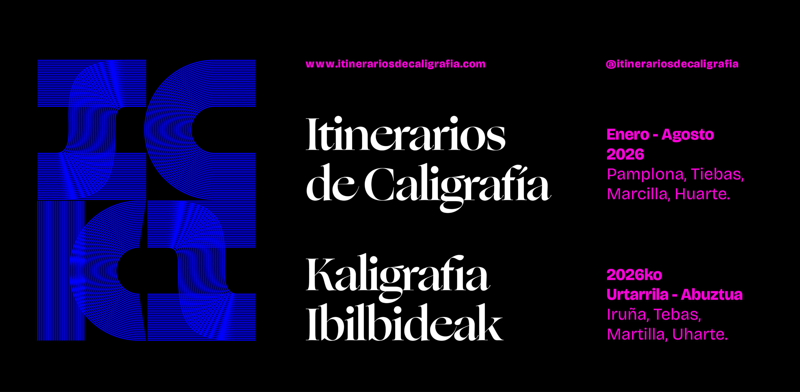 Los colegas de Nueve Cartas nos han hecho llegar una completa información sobre el festival «Itinerarios de Caligrafía/Kaligrafia Ibilbideak (ICKI)» que va a tener lugar en varias sedes de Pamplona/Iruñea desde el 19 al 21 de febrero del presente año. La iniciativa está impulsada por la diseñadora y calígrafa Sonia Beroiz (Kö estudio) en colaboración con entidades culturales, académicas y comunitarias y el apoyo del Programa Innova de Fundación Caja Navarra y Fundación «la Caixa».